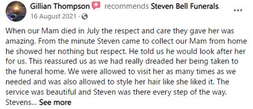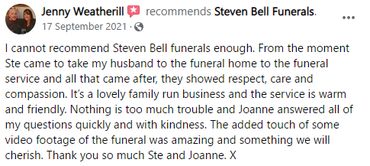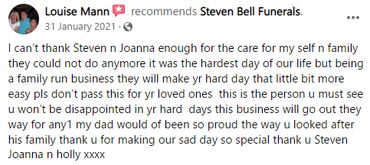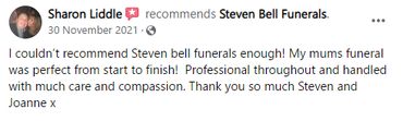 My priority about providing best value and service to my families and believe the funeral service should be exactly how a family decide and I will always try and provide that no matter what has to be done. When you place your trust in Steven Bell Funerals you can expect the highest standards of professionalism, compassionate care and a truly personal service.